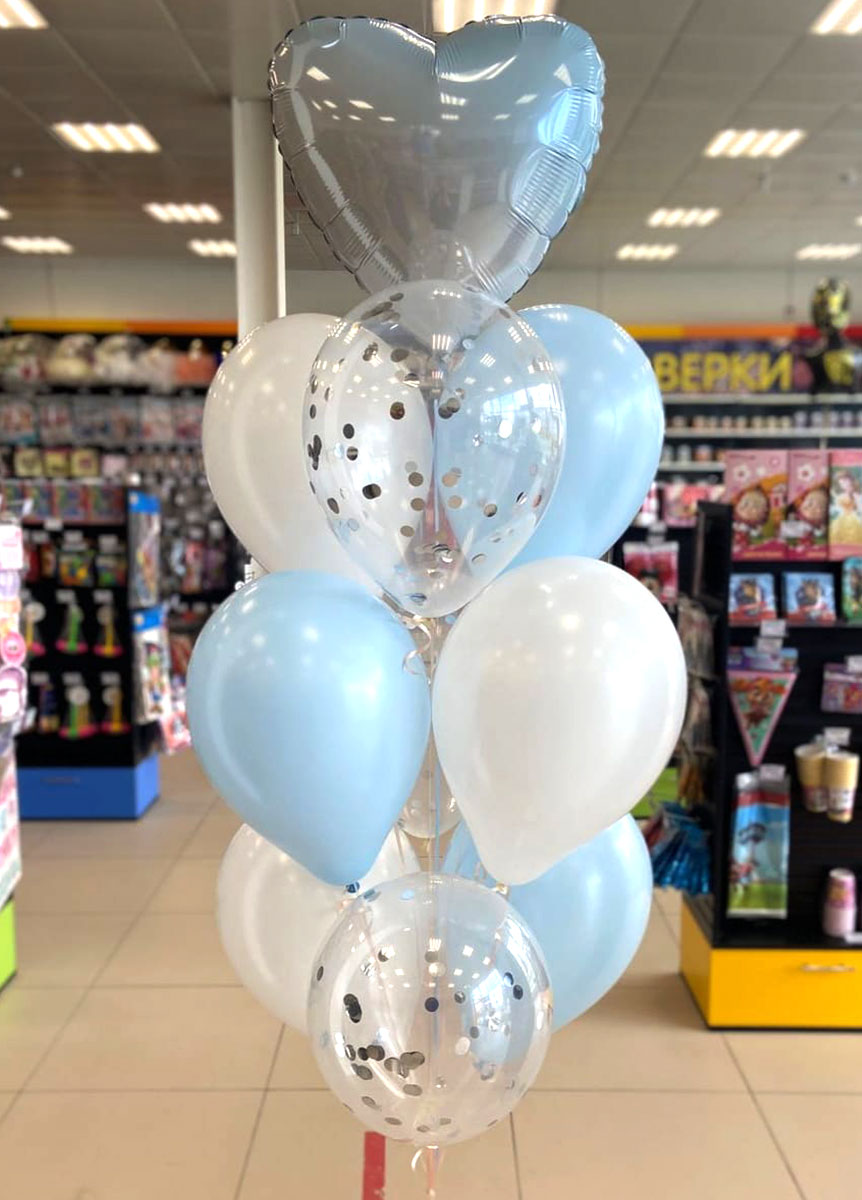 Шар фольга без рисунка Сердце градиент голубой 46 см 1 штШар латексный Кристалл прозрачный с декоративным наполнением круги конфетти серебро 30 см 3 шт