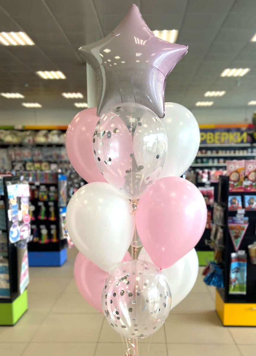 Шар фольга без рисунка Звезда градиент розовый 46 см 1 штШар латексный Кристалл прозрачный с декоративным наполнением круги или стружка конфетти розовое золото 30 см 3 шт
