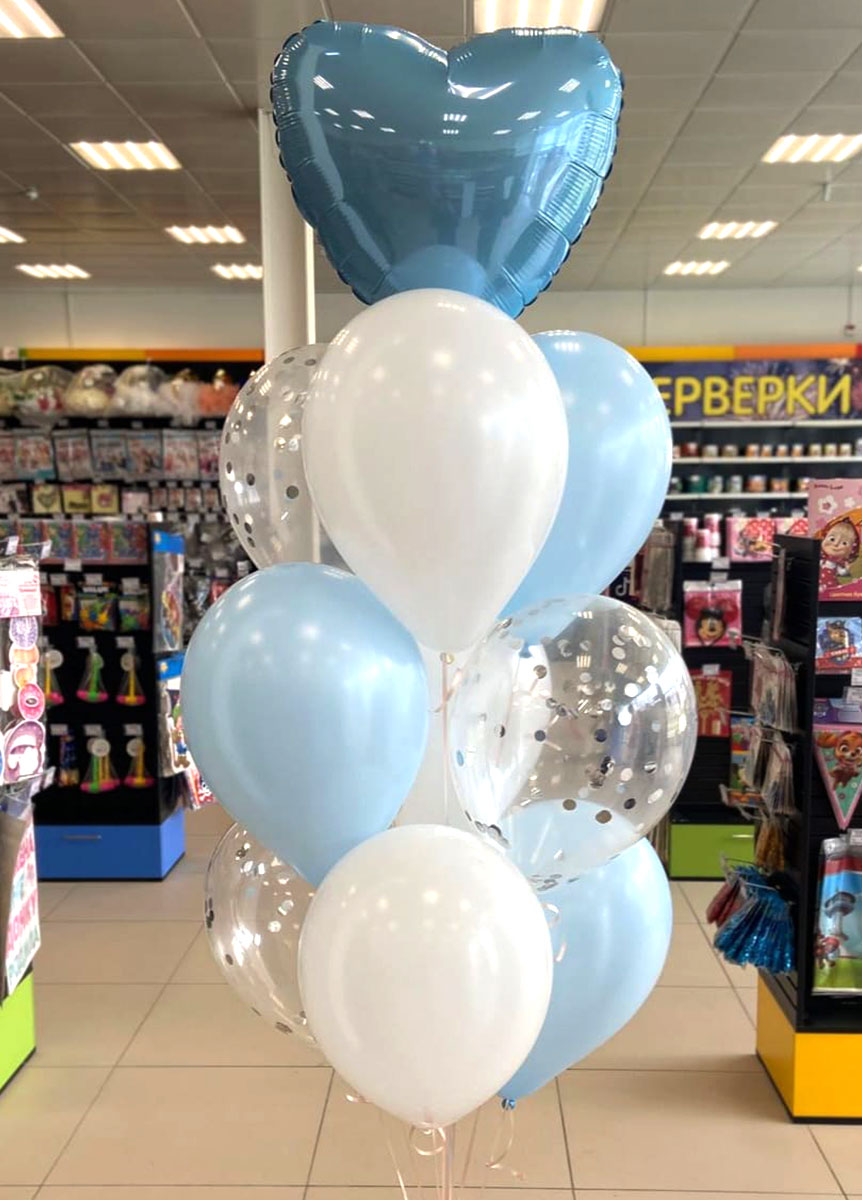 Шар фольга без рисунка Сердце пастель голубой 46 см 1 штШар латексный Кристалл прозрачный с декоративным наполнением круги конфетти серебро 30 см 3 шт