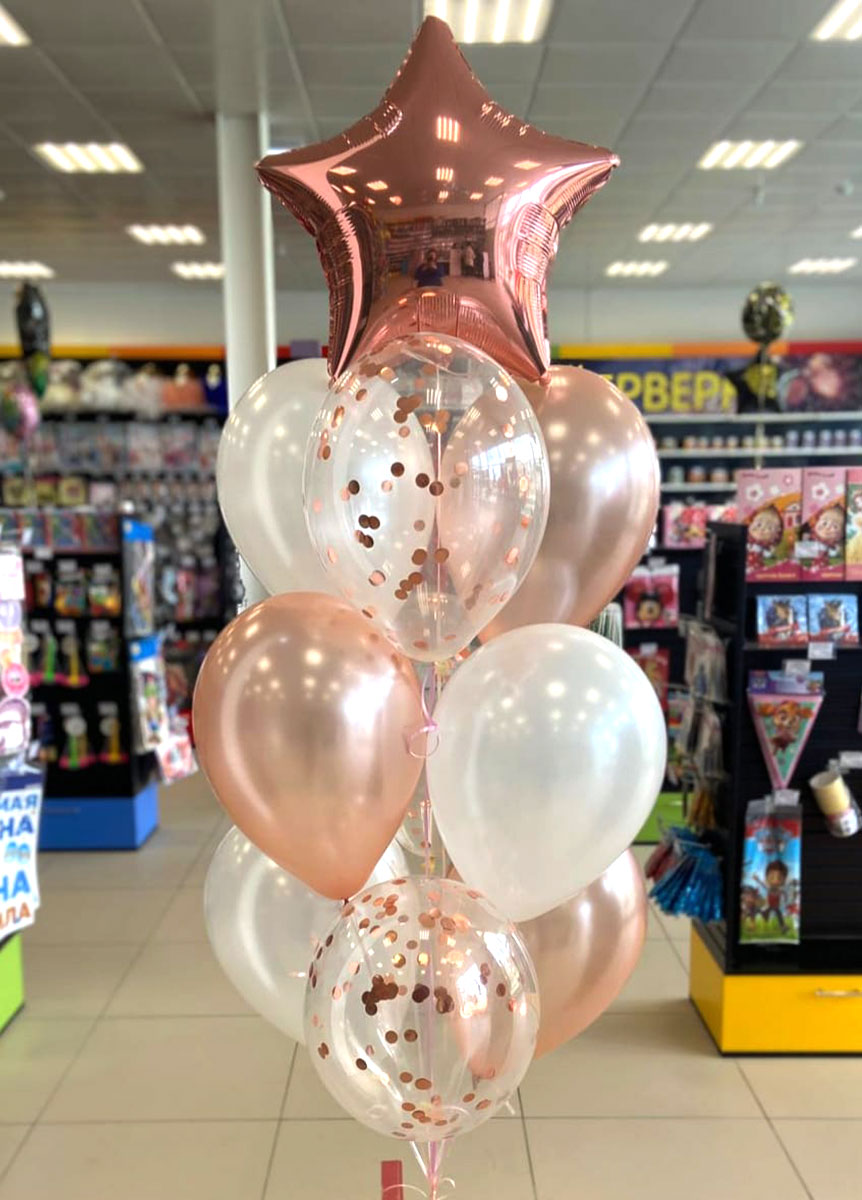 Шар фольга без рисунка Звезда розовое золото 46 см 1 штШар латексный Кристалл прозрачный с декоративным наполнением круги конфетти розовое золото 30 см 3 шт
