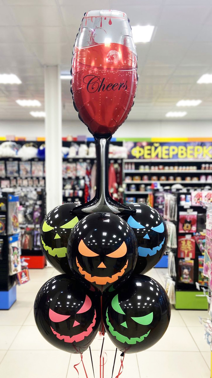 Шар фольга Фигура Бокал на Хэллоуин 1 шт (арт 21880)Шары латексные с рисунком дизайн Тыквы яркие черные (арт 612832) 30 см 6 шт