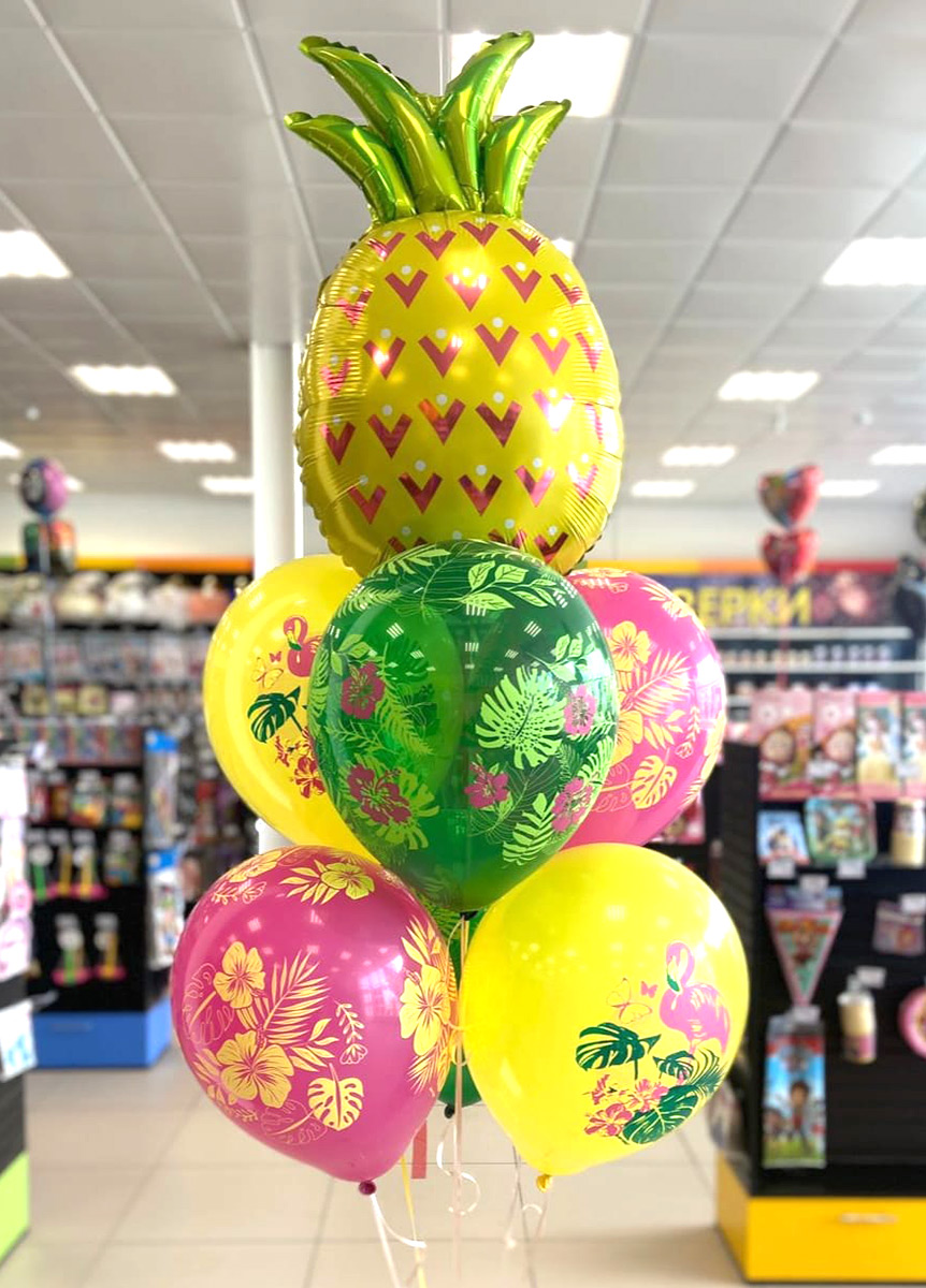 К Шар фольга фигура Ананас 1 штШар латексный с рисунком Гавайская вечеринка 30 см 6 шт
