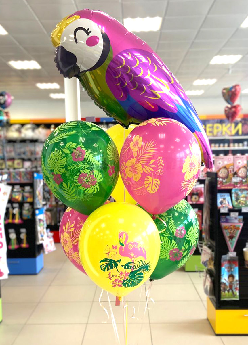 Букет Гавайская вечеринка Попугай яркий 7 шт