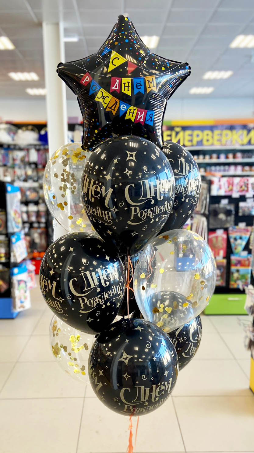 Шар фольга Звезда С ДР Флажки и конфетти (758960) 46 см 1штШар латексный Кристалл прозрачный с декоративным наполнением круги конфетти золото 30 см 3 шт