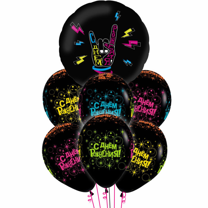 Шар Круг фольга Крутой праздник (758915) 46 см 1 штШар латексный с рисунком С ДР Разноцветные звезды черный (354262) 30 см 6 шт