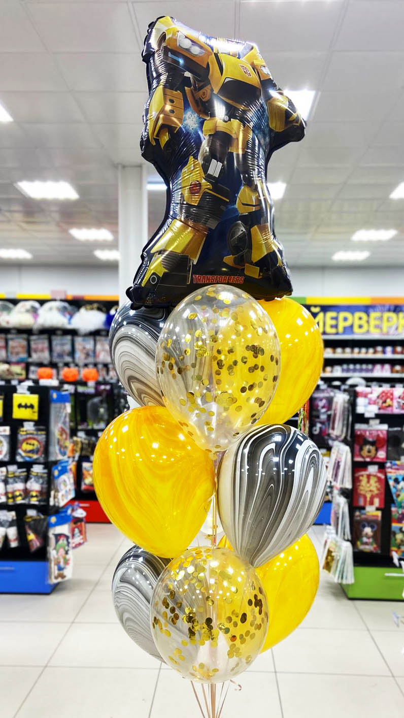 Шар фольга Фигура Трансформер Бамблби 1 штШар латексный Кристалл прозрачный + конфетти золото 3 шт