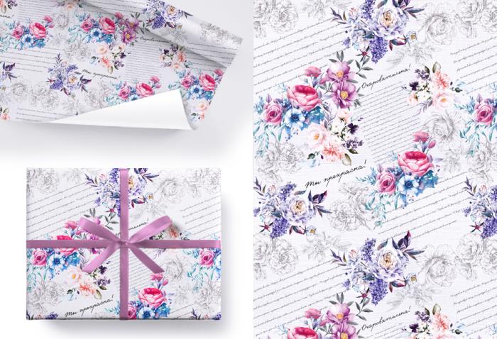Бумага крафт Цветы в стихах 70*100 см 1 шт