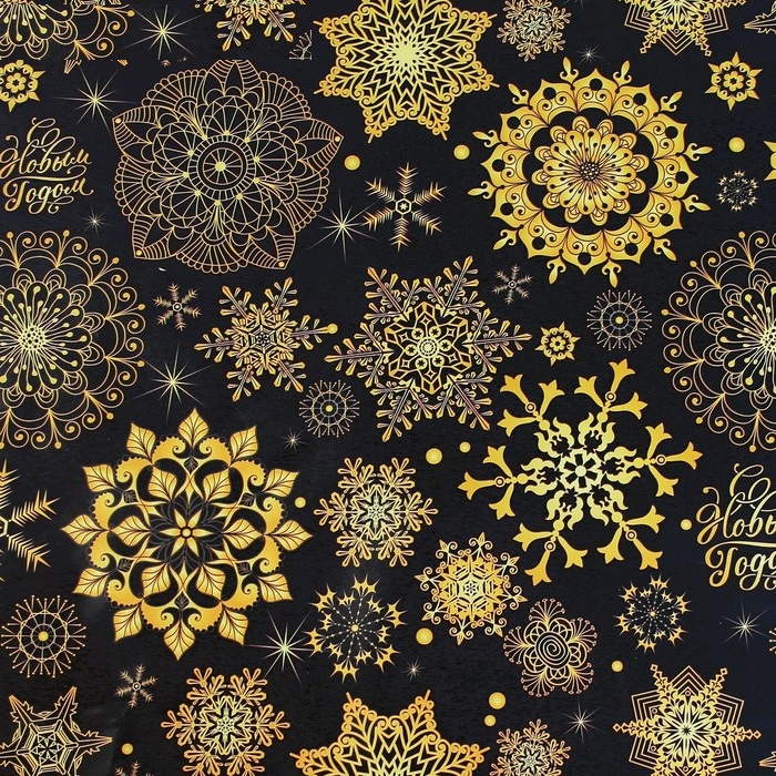Бумага глянцевая Золотые снежинки 70*100 см 1 шт