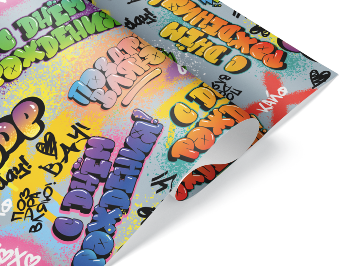 ----Бумага упаковочная С ДР Граффити 70*100 см 1 шт