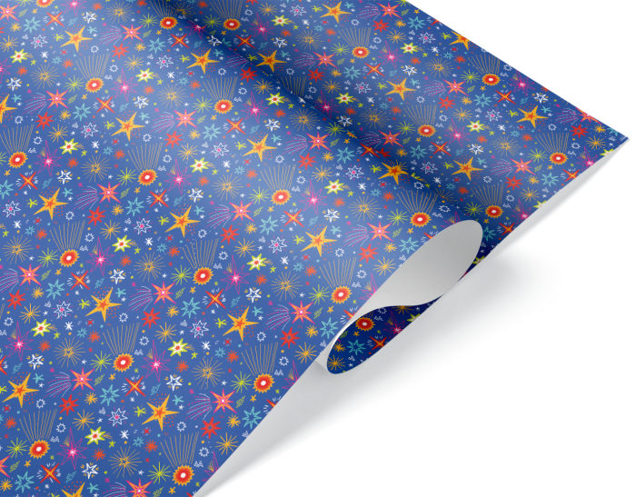 ----Бумага упаковочная Звезды сверкающие 70*100 см 1 шт