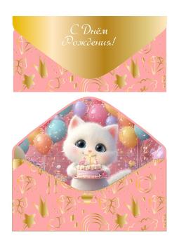Конверт для денег С ДР Кошечка с тортом 1 шт