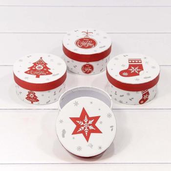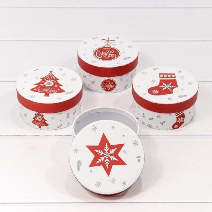 Коробка круг Новый год микс 10,8*5,2 см 1 шт