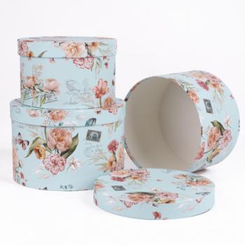 Коробка круг Цветы на голубом №1 20,5*13 см 1 шт
