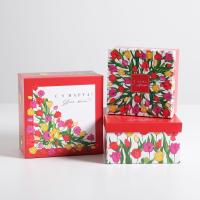 Коробка квадрат 8 марта №3 22*22*12 см рис микс 1 шт