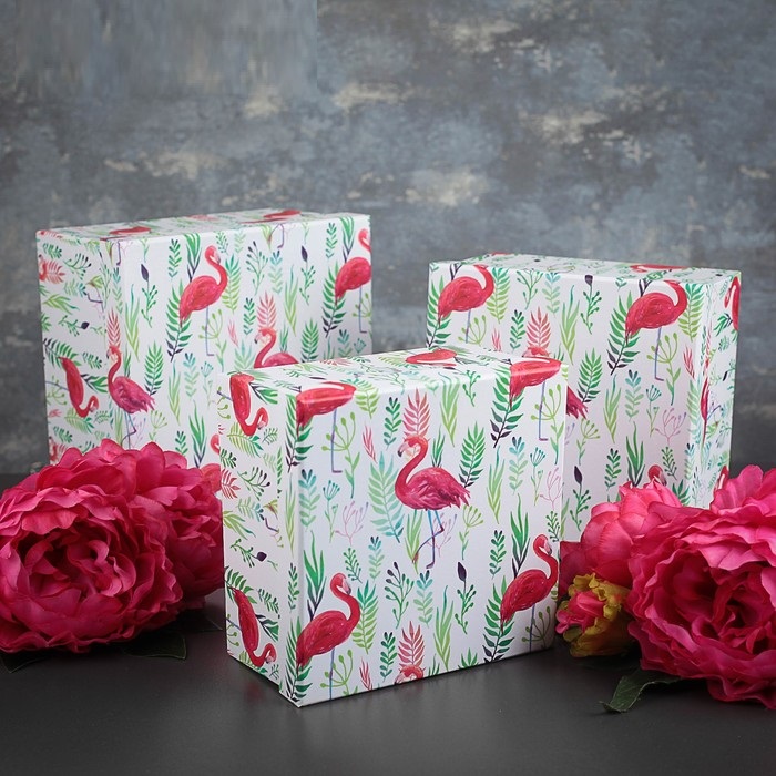 Коробка квадрат Фламинго №2 19*19*10 см 1 шт