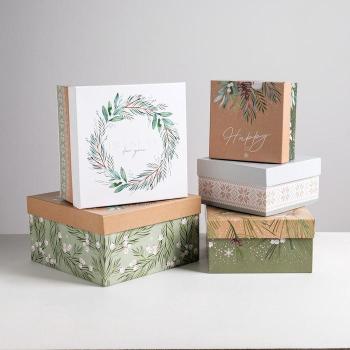 Коробка квадрат Зимний №1 14*14*8 рис микс 1 шт