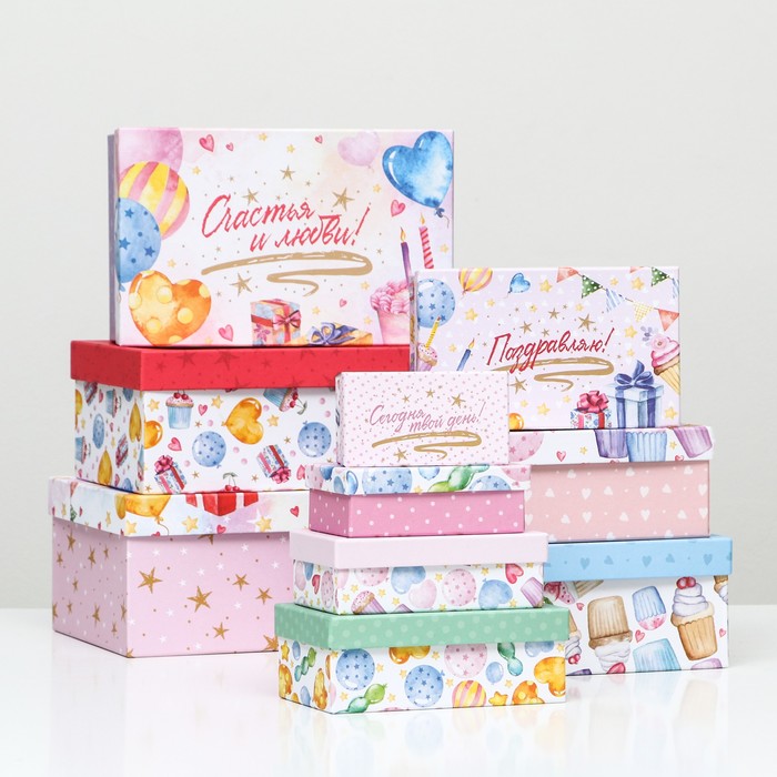 Коробка прямоуг С ДР шарики №1 12*6,5*4 см рис микс 1 шт