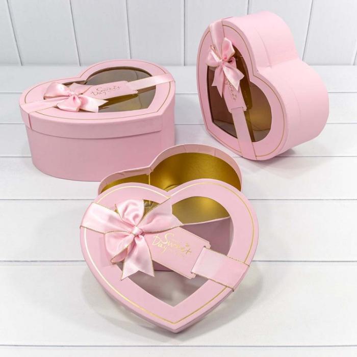 Коробка сердце Розовое с окном №1 23,5*20*8,5 см 1 шт