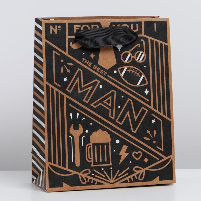 Пакет крафт Настоящему мужчине 15*12*5,5 см 1 шт