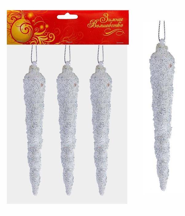 Подвеска Сосулька цветной акрил белая 14 см 3 шт