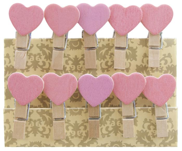 ----Прищепки для декора Сердечки розовые 3,5 см 10 шт