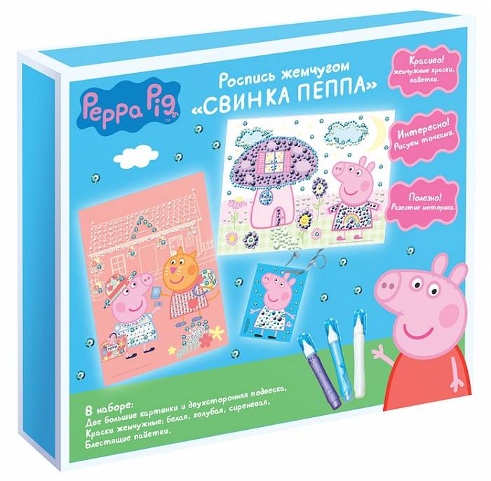 -Роспись жемчугом Свинка Пеппа 1 штАльбомы для рисованияБлокноты для рисованияГуашь, краски акварельные, пальчиковые, кистиКарандаши цветныеКлейМел для рисованияНаборы для изготовления браслетов из резинокНаборы для лепкиНаборы ручекНаклейки, переводные картинкиНожницы канцелярскиеПластилинРаскраски, аппликации.мозайкаТочилки, ластики, линейкиФломастерыЦветная бумагаЦветной картон