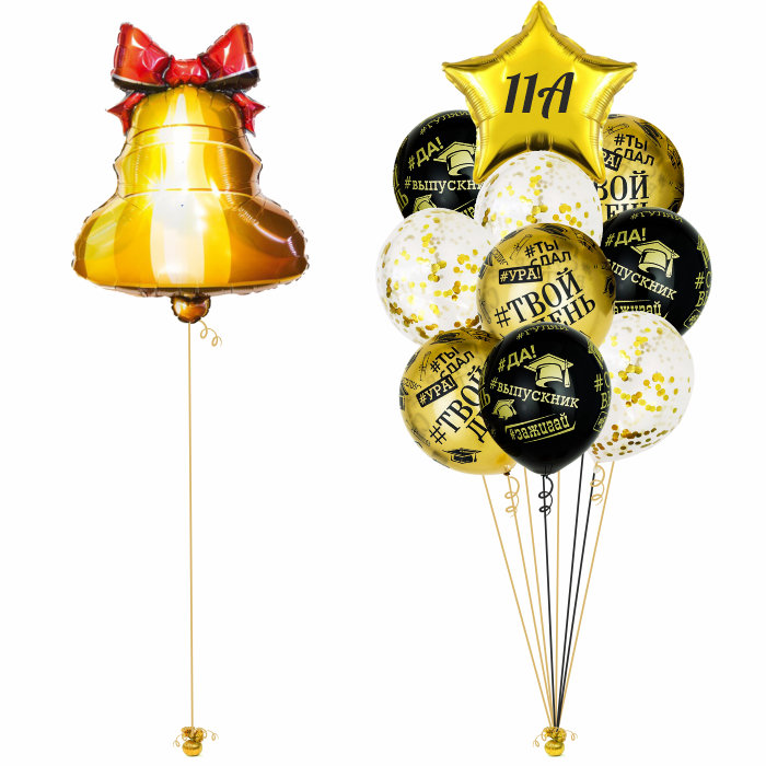Сет из воздушных шаров Колокольчик Выпускник Black&Gold 11 шт
