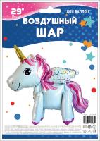Шар Фигура ходячий фольга Единорог с крыльями белый 58 см