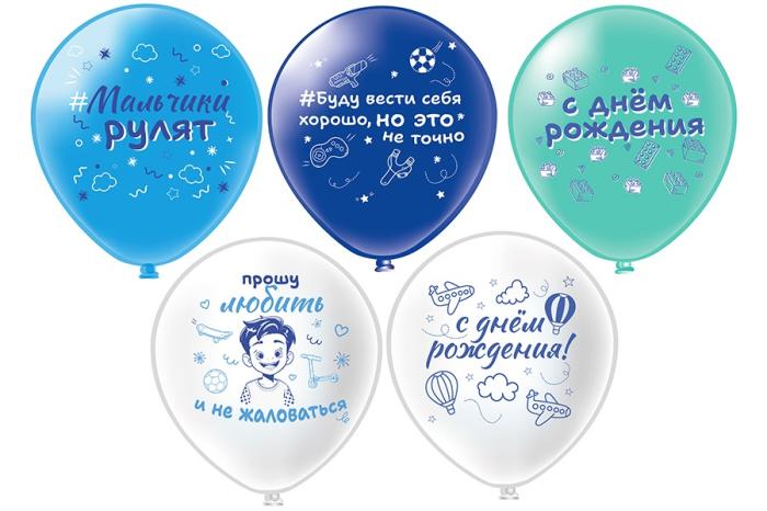 Шар шелкография 12" С ДР! Мальчики рулят! 25 шт
